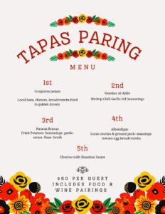Come join us for a fun evening TAPAS style- Small plates paired with Schulze vineyards delicious wines!